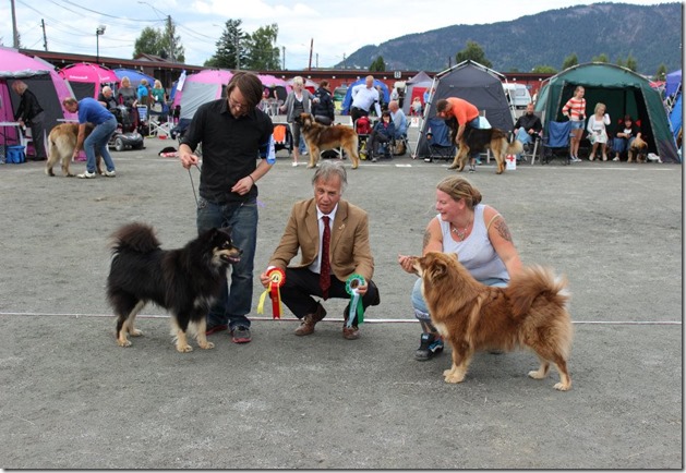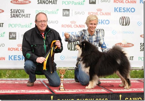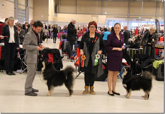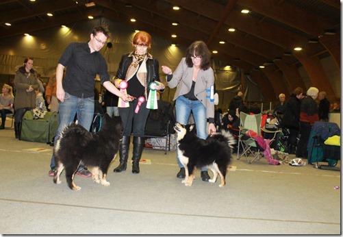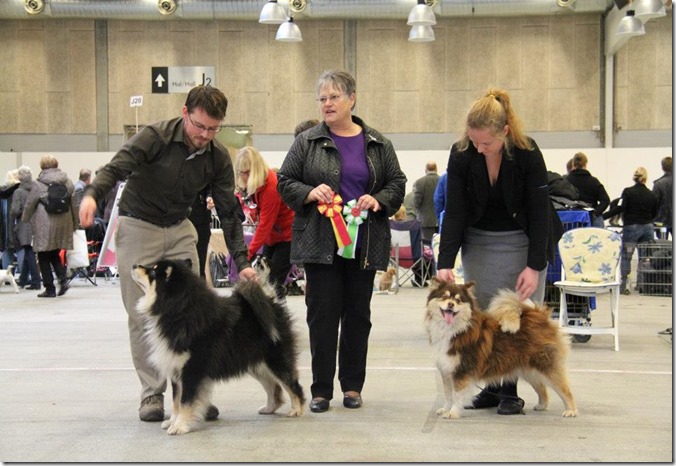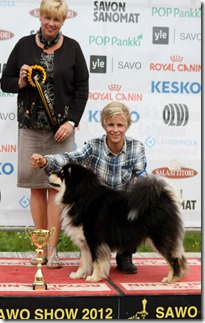 Jeg, Amund, Max og Nieida reiste til Finland i begynnelsen av August for å delta på trippel internasjonal Sawo Show i Kuopio i Finland. Første dag fikk begge CK, og plassert i championklassen, men BTK/BHK plasseringer uteble. På lørdag ble Max BIR og så senere BIG 3! Han fulgte opp neste dag med å bli BIR og BIG 4! Det var utrolig gøy å reise til rasens hjemland å få slike resultater. Nieida plasserte seg i championklassen med CK også de 2 andre dagene.Jeg var så heldig å få handle Max sin pappa, som nettopp hadde flyttet hjem til Finland fra Frankrike som han har bodd siden før han fyllte 2 år, han har 6 cert i Finland, men manglet 1 for å bli Finsk Champion. Og jeg fikk æren av å vise han den dagen han tok det