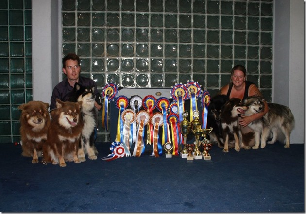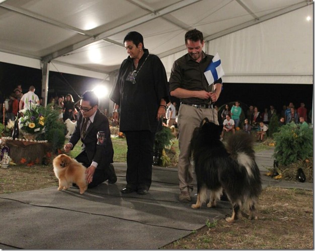 Helgen etter var det duket for rasespesialen på Biri. En utstilling jeg har deltatt på hvert år, de siste årene. Toivo ble BIR og BIS3 der i 2009, Bjønn ble BIR og BIS2 der i 2010, Max ble BIR og BIS 1 der i 2011. Så litt forhåpninger hadde man joJuniorklasse hannhund ble vunnet av Lumiturpa Hälläväli som deleies av Kennel Vintervidda og Hanne Aasen på Kennel Lappeland. Han ble også BIR og BIS1 Junior, BIM junior ble vår Bjønns datter Myeiko’s Arja!
