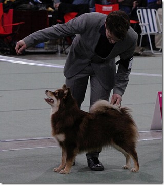 Utstilling nr 3, skulle vi dømmes av rasespessialisten Marja Talvitie som har vært oppdretter på både finsk lapphund og lapsk vallhund. Hun har også i mange år vært leder av Finsk Lapphundklubb. Jeg var veldig glad når alle 4(Bjønn, Nieida, Miska og Max) fikk Excellent av henne. Og at hun ga CK til Miska som er mitt eget oppdrett, og mente hun var bedre enn sin mor, så Miska ble beste tispe. Max ble best i rasen. Miska ble dermed Rumensk JuniorChampion, og Max ble Rumensk Champion! Miska blir igjen shortlistet til BIS-junior.